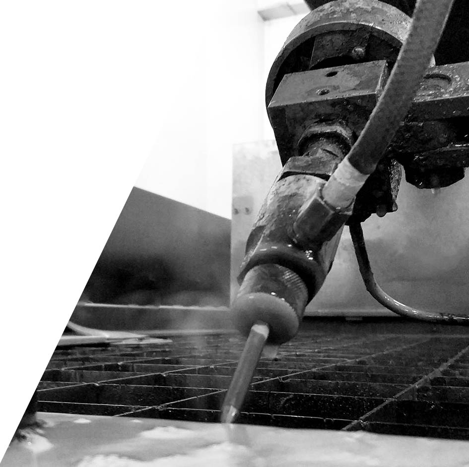 Do wycinania skomplikowanych kształtów używamy technologii Waterjet. Jest to technologią cięcia różnych materiałów przy użyciu cienkiego strumienia wody lub mieszanki wody i ścierniwa pod wysokim ciśnieniem. Cięcie przy użyciu czystej wody jest stosowane do obróbki delikatnych materiałów takich jak jedzenie lub guma. Mieszanka wody i ścierniwa jest jest stosowana do twardych materiałów takich jak granit lub metal.